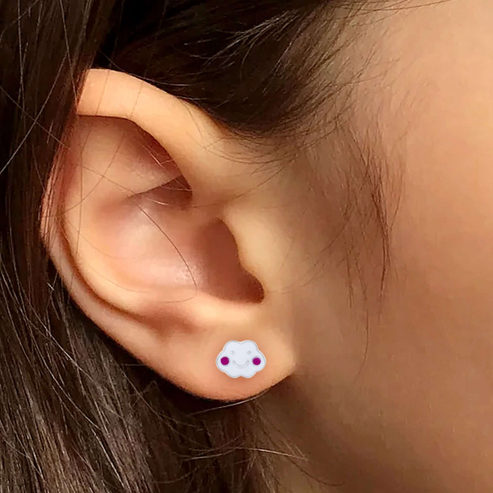 Dreamy Clouds 925 Sterling Silver Stud Earrings for Kids