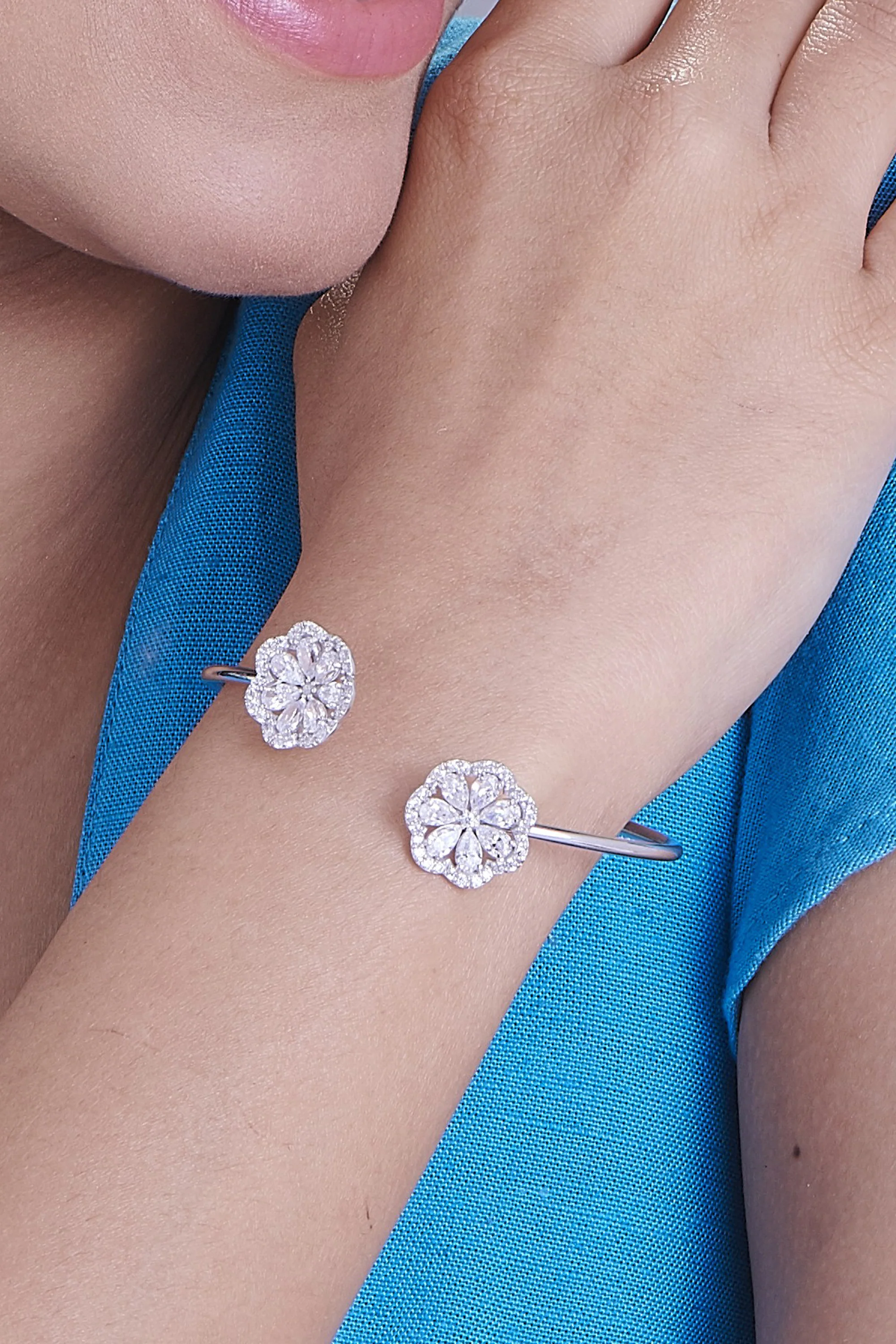 Meet Nipura's 925 Sterling Silver Floral Bloom Bangle, a true masterpiece of elegance and charm with a touch of floral magic to your everyday pick. Crafted from genuine 925 Sterling Silver, the Floral Bloom Bangle features floral designs that capture the essence of delicate bloom meticulously detailed with zircon, creates a stunning piece that's chic and unique with sleek twist or easy slide fit, making it a standout accessory for any occasion.