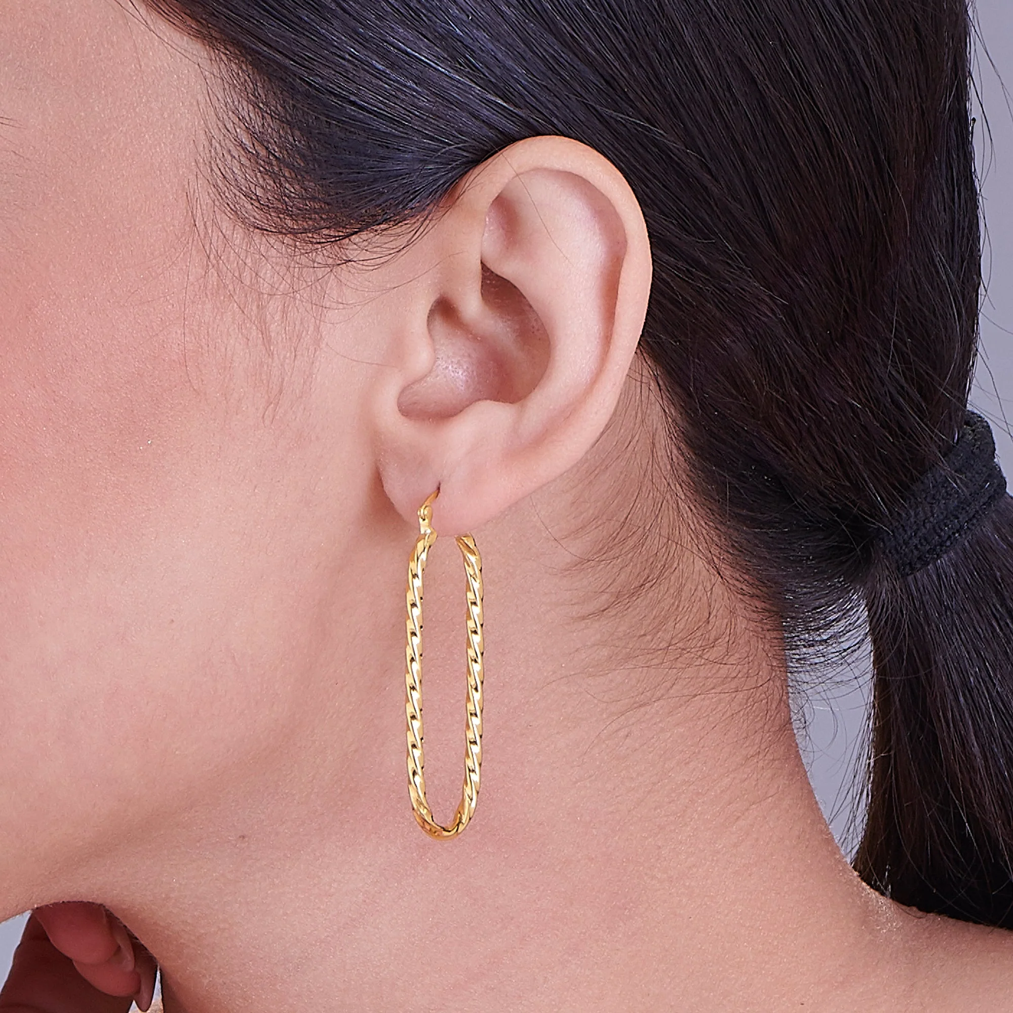 Golden Twisted Oval 925 Sterling Silver Hoop Earrings