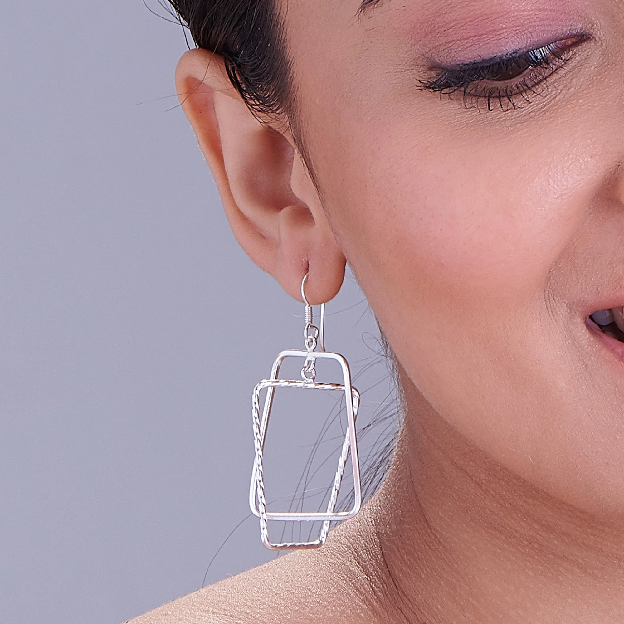 Assymetric Rectangle 925 Sterling Silver Earrings